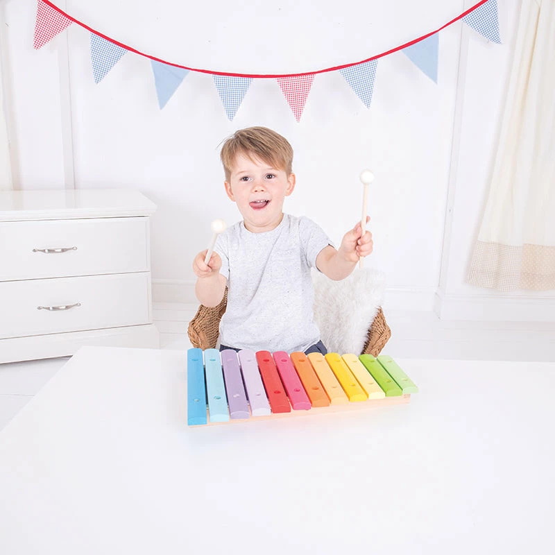 All the colours of the rainbow, we love the beautiful colour range on this xylophone! Help body and mind work together as your child learns to strike the instrument and produce different sounds. Develop hand eye coordination, promote creativity and stimulate neural pathways with this musical masterpiece.Β