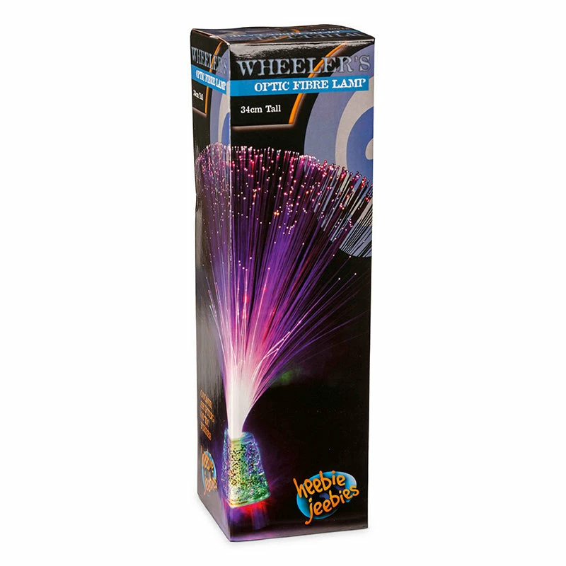 Bring colour and sparkle to any room with this stylish 34cm tall optic fibre lamp from Heebie Jeebies. The base measures 8cm x 8cm and contains floating glitter. The lamp is battery powered so it can easily be moved from room to room.