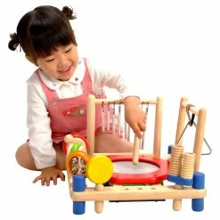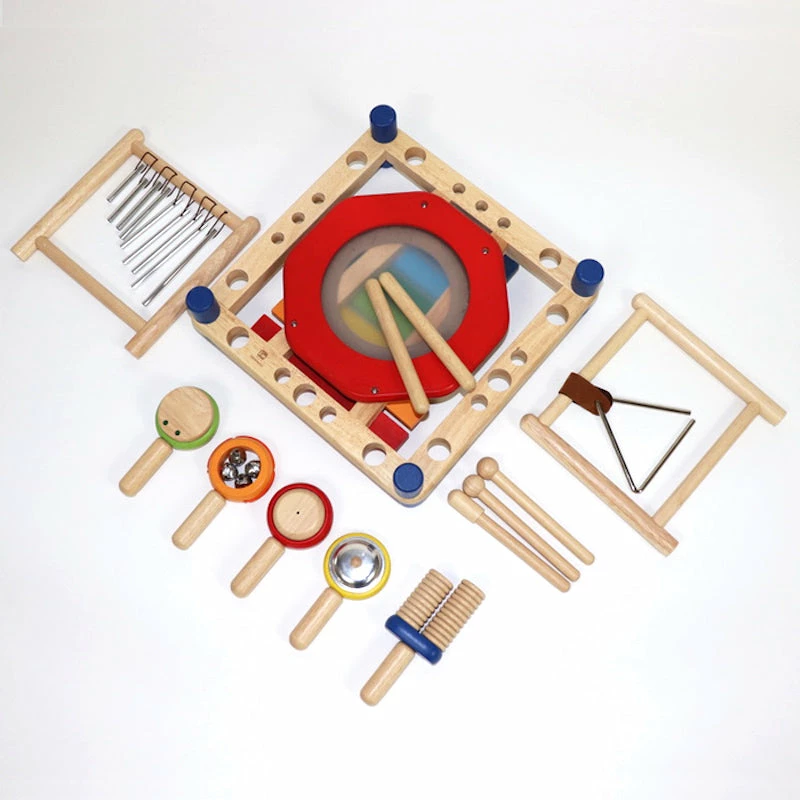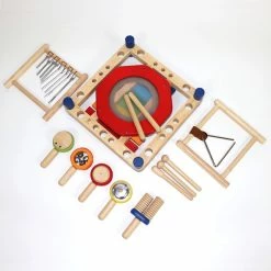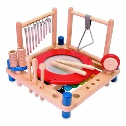 Melody Mix is a music activity set that features 10 instruments; xylophone, drum, tubular chimes, triangle, cymbal, bells, maracas, castanet, double guiro, a pair of rhythm sticks plus two strikers and one scraper. Produced from sustainable rubber wood and finished with non-toxic child safe paints and lacquers. This will keep your music maestro occupied for hours!