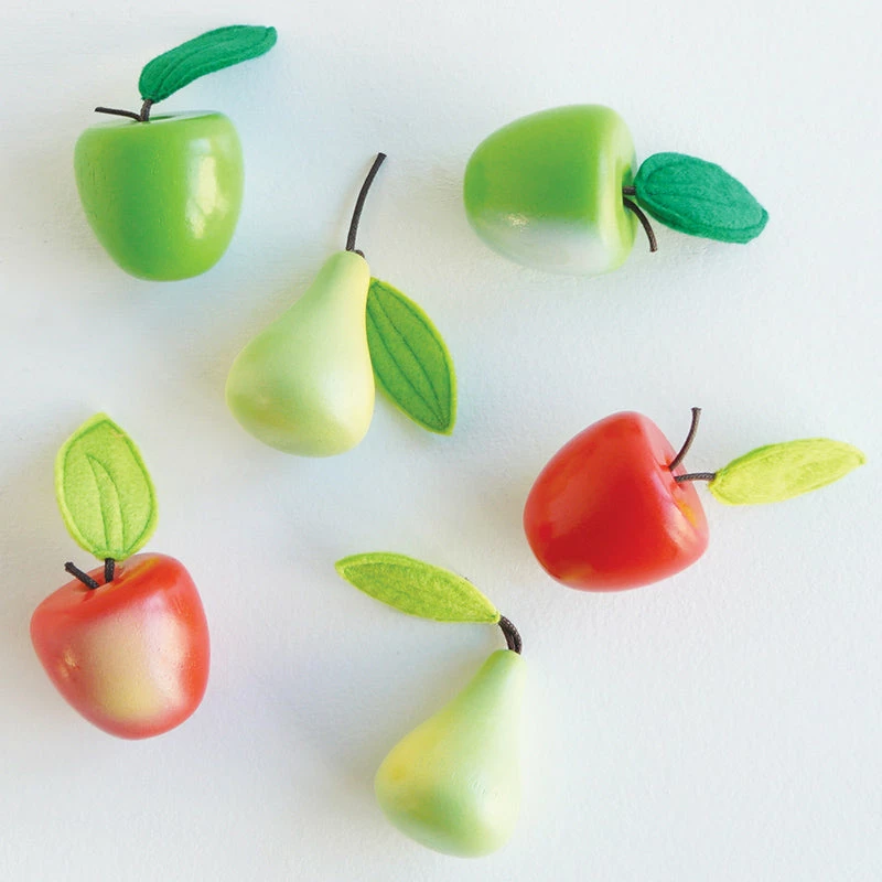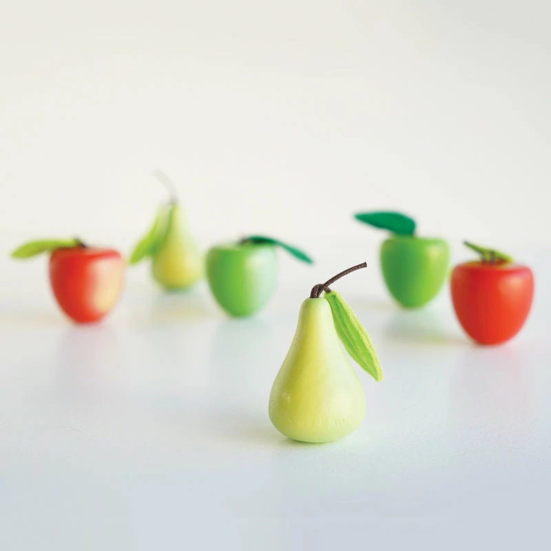 A delicious and healthy treat for all. This market crate comes with 4 wooden apples and 2 yummy pears.Β This series of wooden play foods are compatible with the Le Toy Van Honeybee Market, or can be used for stand-alone play.Β