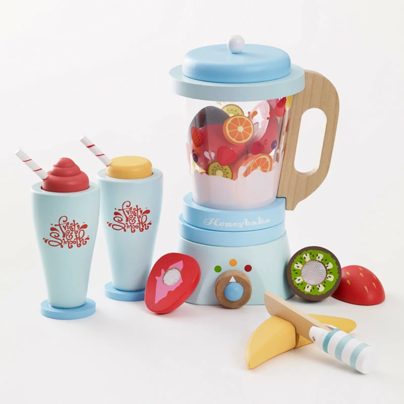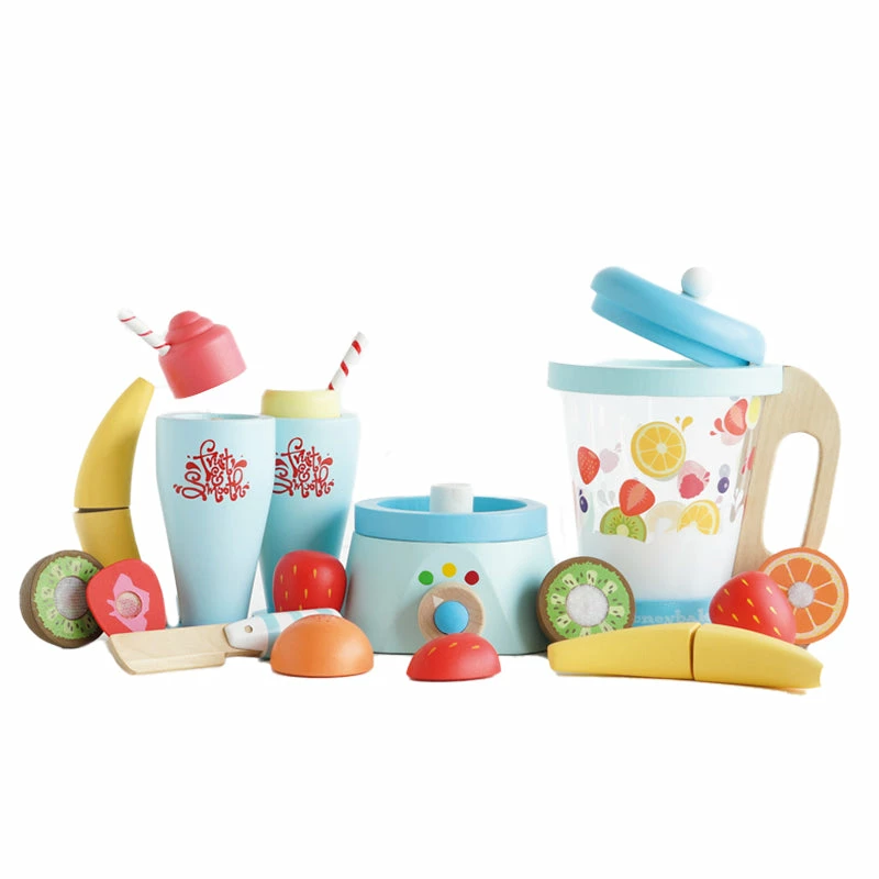 Blender Set Fruit & Smooth β All you need to whip-up healthy and delicious treats! Little ones will love this painted wooden set that has Velcro pieces to enable the fruit to be βcutβ in half with the supplied wooden play knife. This is a great activity for developing coordination while playing the part of a true kitchen whizz.