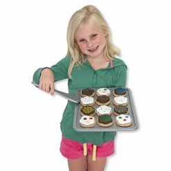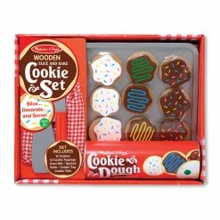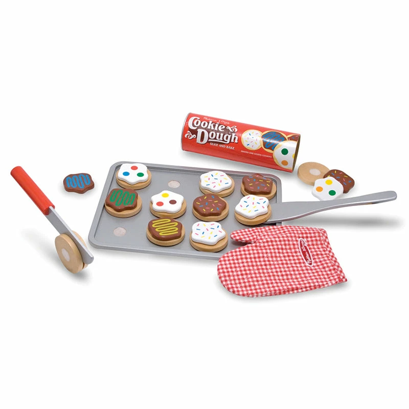 Children will have lots of fun making these delicious cookies! This colourful wooden slice & bake cookie set from Melissa & Doug includes 12 wooden, sliceable cookies and 12 toppings, wooden knife, spatula, cookie sheet and an oven mitt for ‘safe’ play! For easy storage the cookies store in a durable dough tube.Β This pretend play toy is great for developing imaginations, plus teaching fine motor skills and hand/eye coordination.