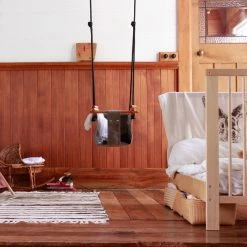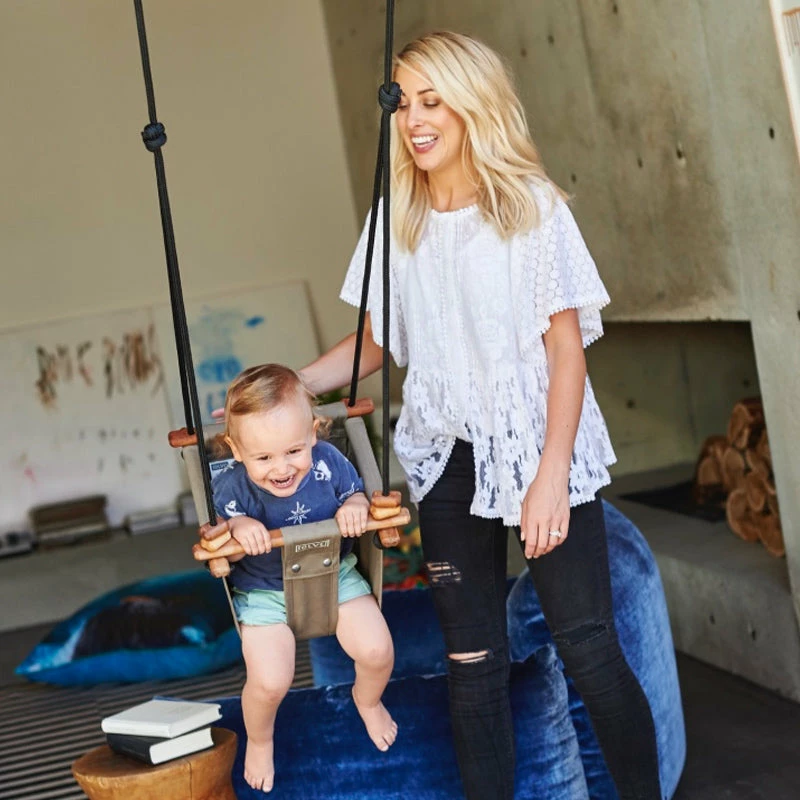 Valuing fine craftsmanship, functionality and the environment, this Taupe Solvej swing is an exclusive and attractive baby and toddler swing for the home – both for indoors and out.