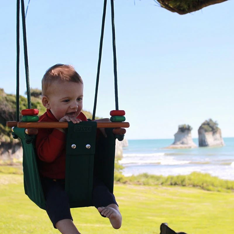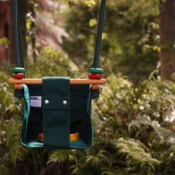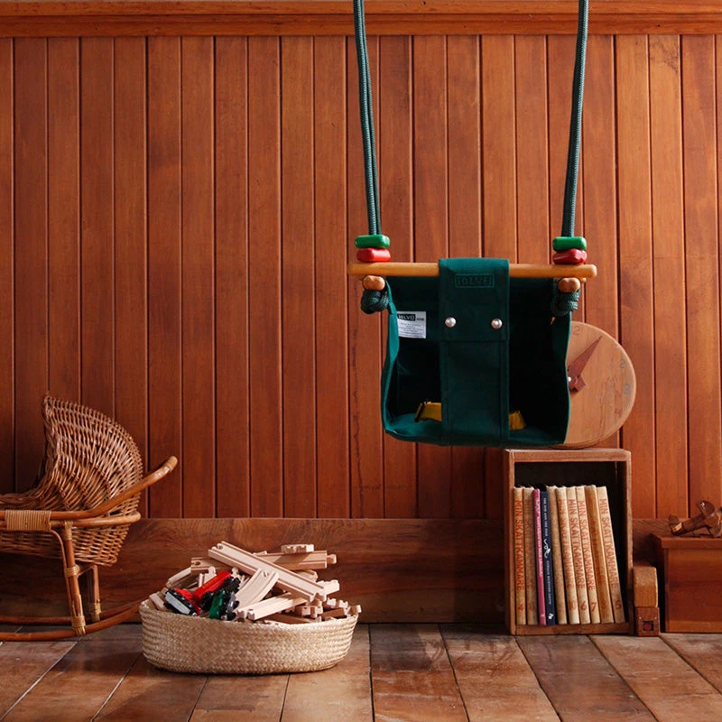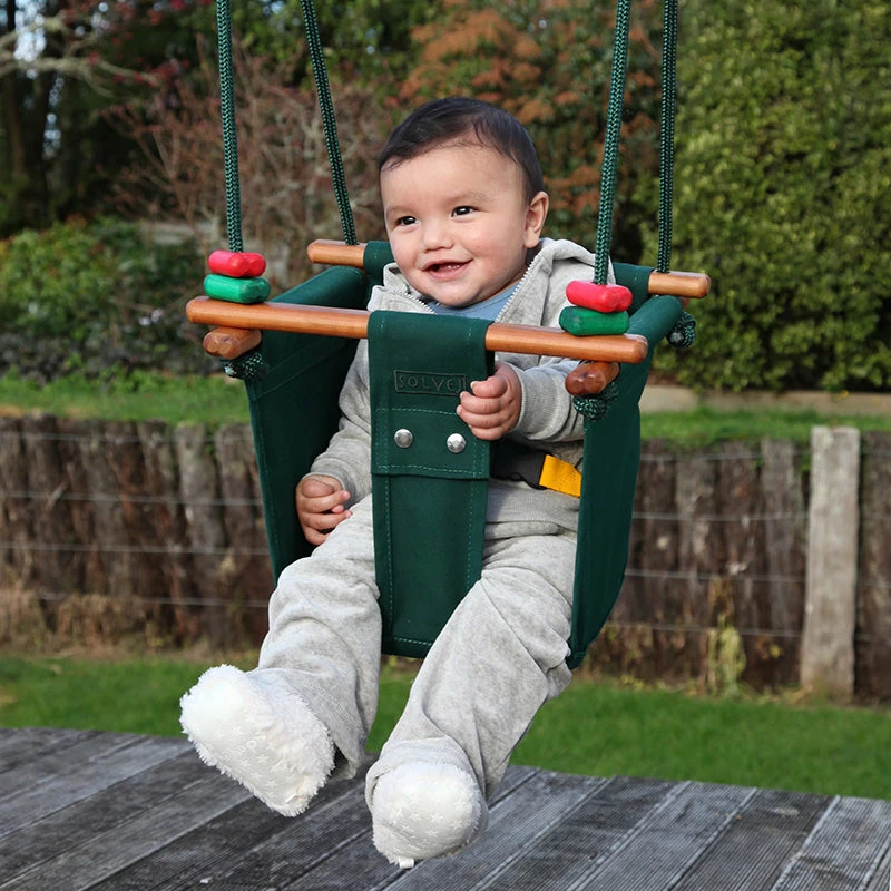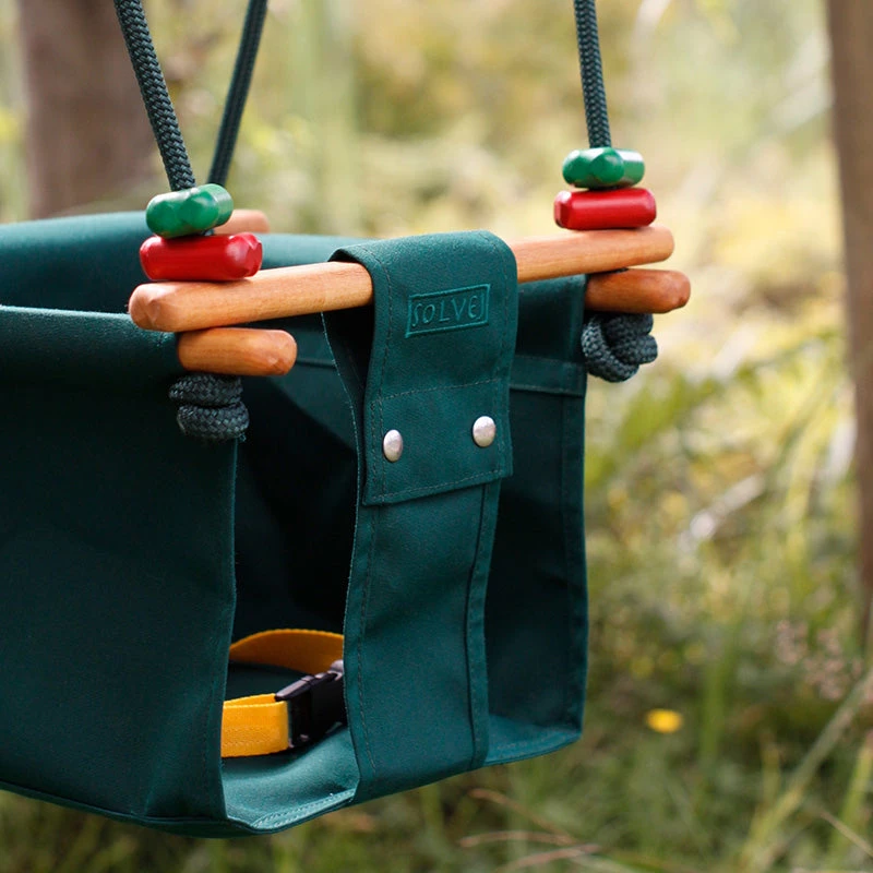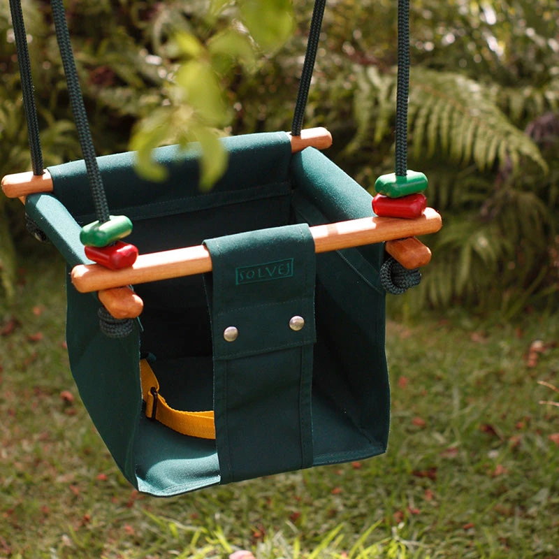 Valuing fine craftsmanship, functionality and the environment, this Forest Green Solvej swing is an exclusive and attractive baby and toddler swing for the home – both for indoors and out.