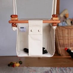 Valuing fine craftsmanship, functionality and the environment, this Solvej Merino White swing is an exclusive and attractive baby and toddler swing for the home – both for indoors and out.