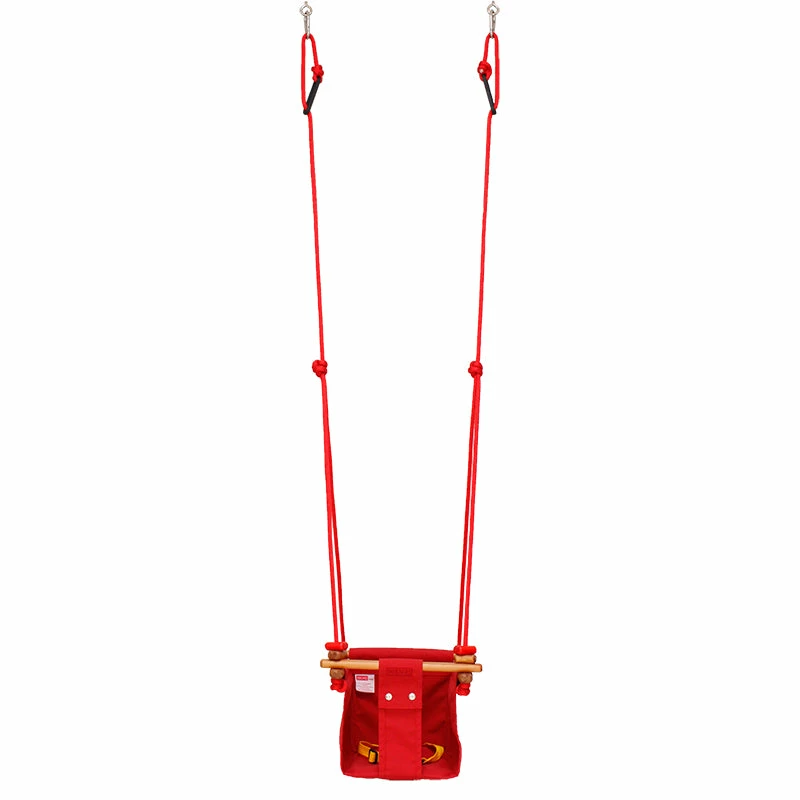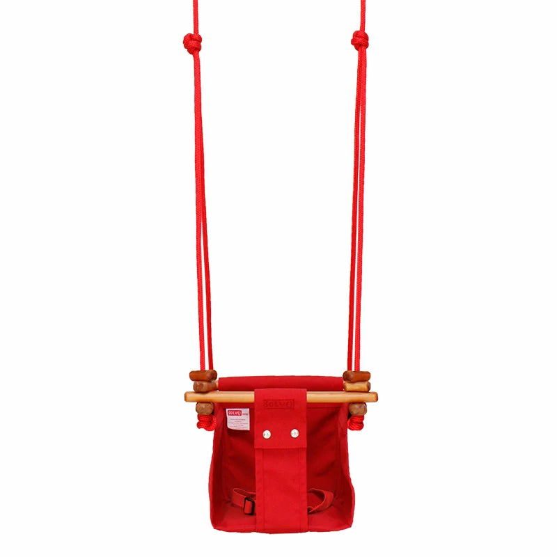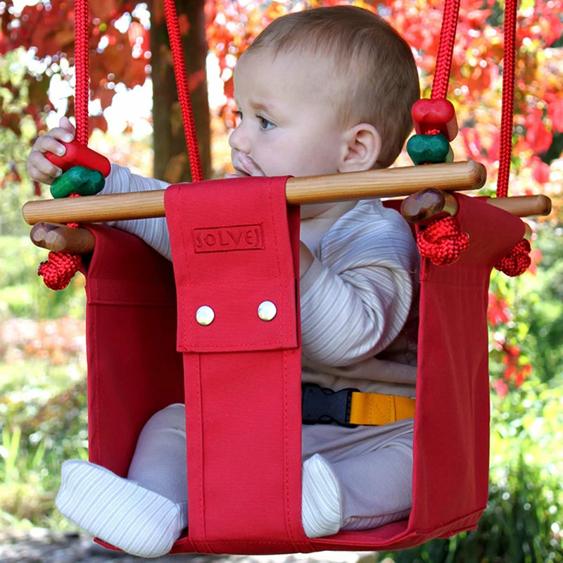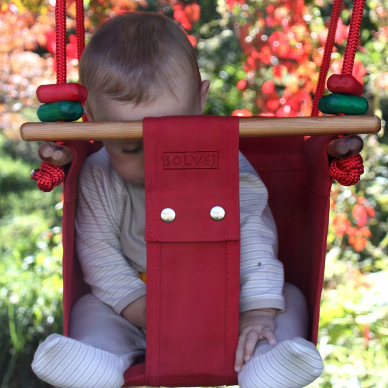 Valuing fine craftsmanship, functionality and the environment, this Pohutukawa Red Solvej swing is an exclusive and attractive baby and toddler swing for the home – both for indoors and out.