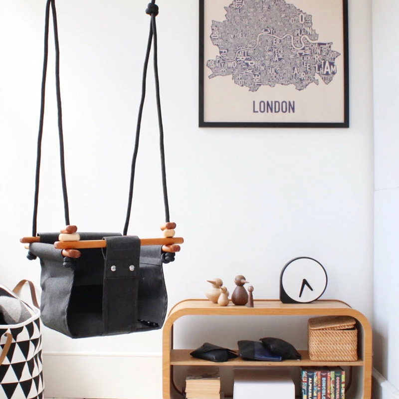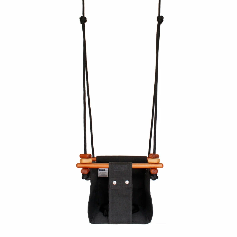 Valuing fine craftsmanship, functionality and the environment, this Slate Grey Solvej swing is an exclusive and attractive baby and toddler swing for the home – both for indoors and out.
