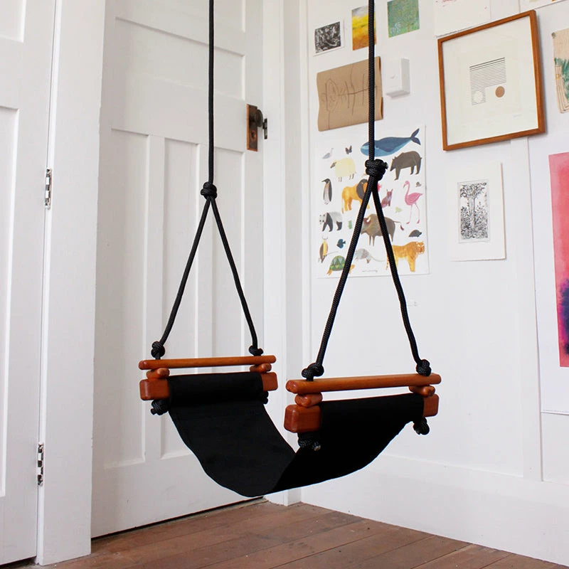 Valuing fine craftsmanship, functionality and the environment, this Coral Black Child Solvej swing is an attractive, safe, and comfortable child’s swing skillfully crafted for the home environment.