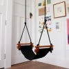 The swing has a timeless natural design and safety is a key factor: The Solvej child swing’s construction increases safety for children playing in the vicinity of the swing in use. The soft canvas seat hugs the shape of the body when swinging, sitting or lying on the tummy, making it a safer swing (no extruding hard parts that have no give). The ropes are made from an extremely strong 10mm high performance yachting braid.