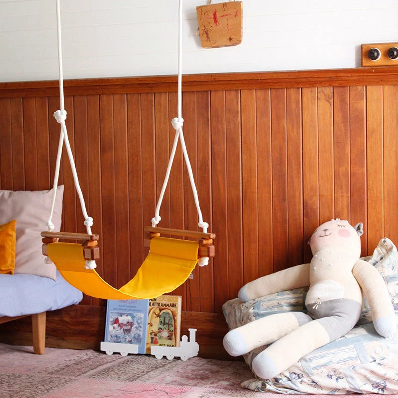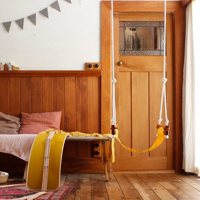 Valuing fine craftsmanship, functionality and the environment, this Kowhai Yellow Solvej swing is an attractive, safe, and comfortable child’s swing skillfully crafted for the home environment.
