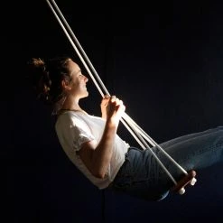 The Board Swing is 50cm x 14cm and can be hung up to 3.3 metres high (hanging point to ground).Β Β The weight capacity is up to 90kg.