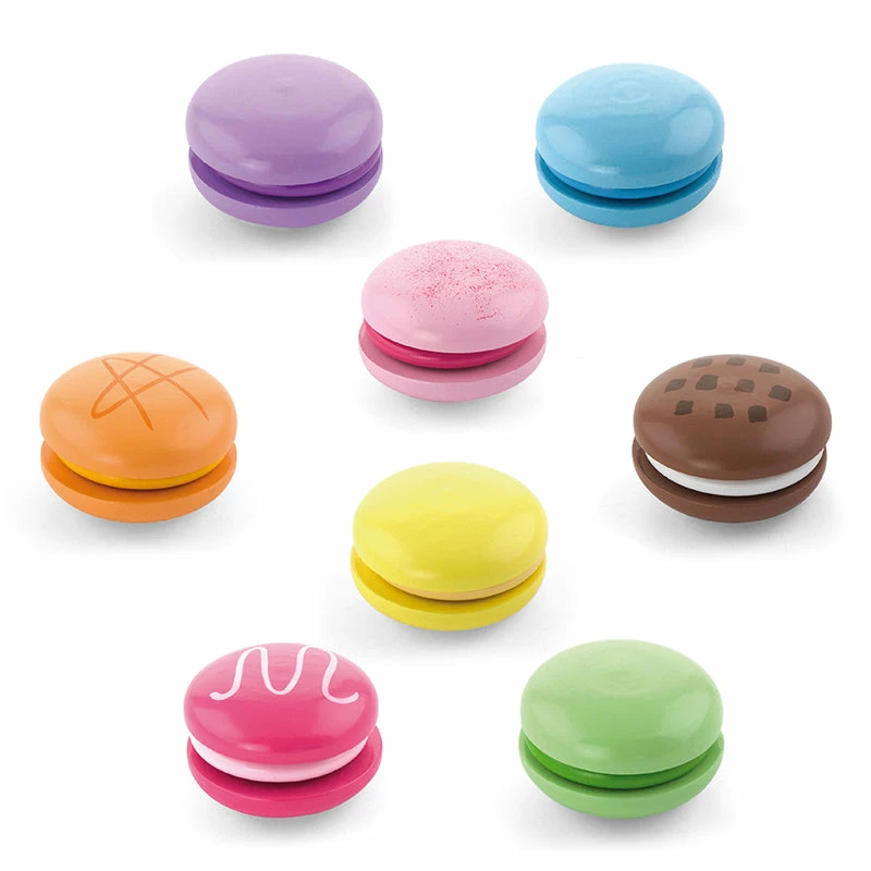 Treat your guest to a yummy macaron at your next high tea with this play food set from Viga. Play food is a great way to develop children socialising and communication skills. This set includes eight deliciously attractive wooden macarons in a range of colours. Each macaron is made up of three wooden parts that connect via velcro buttons. The macarons can, therefore, be mixed and matched until the cows come home. This process will develop childrenβs fine motor skills and problem-solving skills. Each macaron has a diameter of 4.5cm and is 2cm high.Β